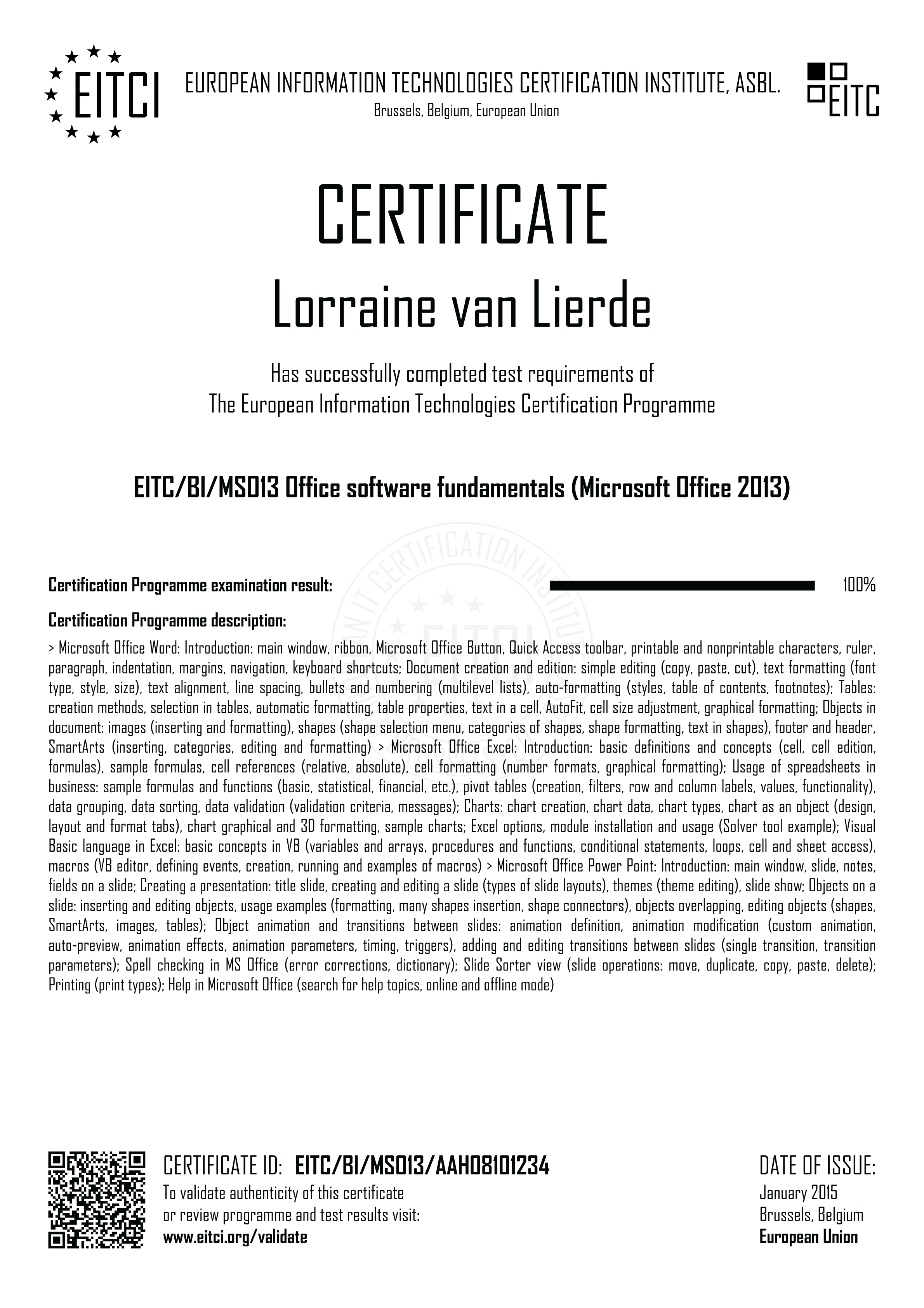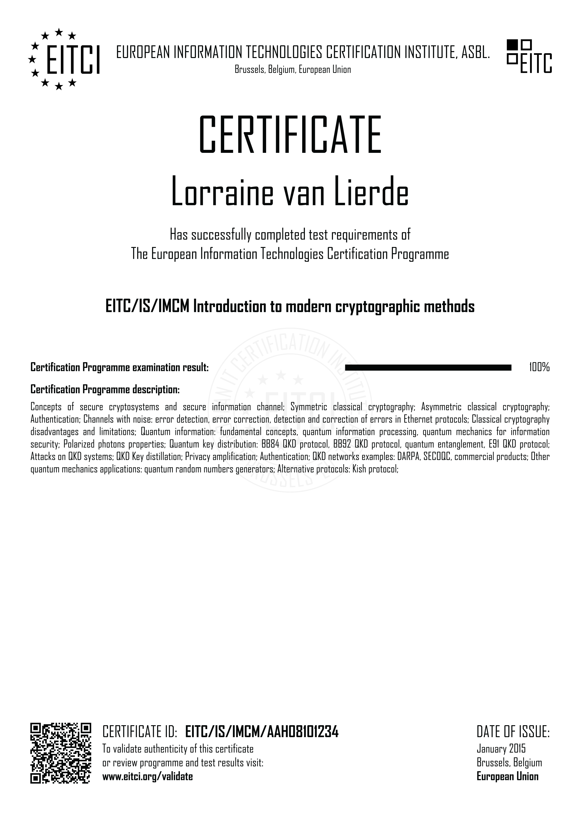 The EU issued EITCA Academy Certificate with detailed supplements is a formal attestation of your competencies.