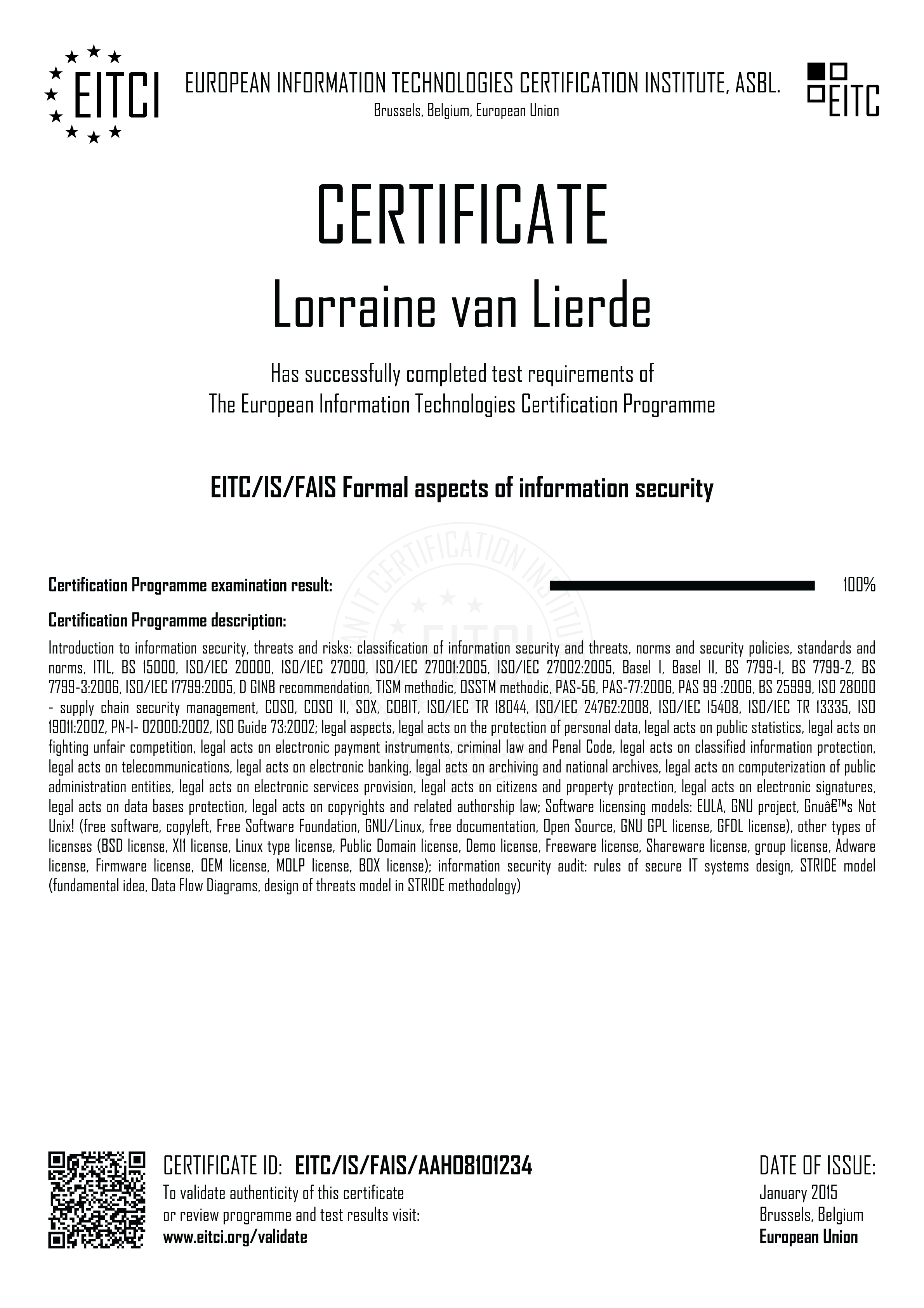 If you or your organization are interested in the programme, the EITCI subsidy will enable 90% reduction of the European IT Certification Academy fee promoting dissemination of the standard.