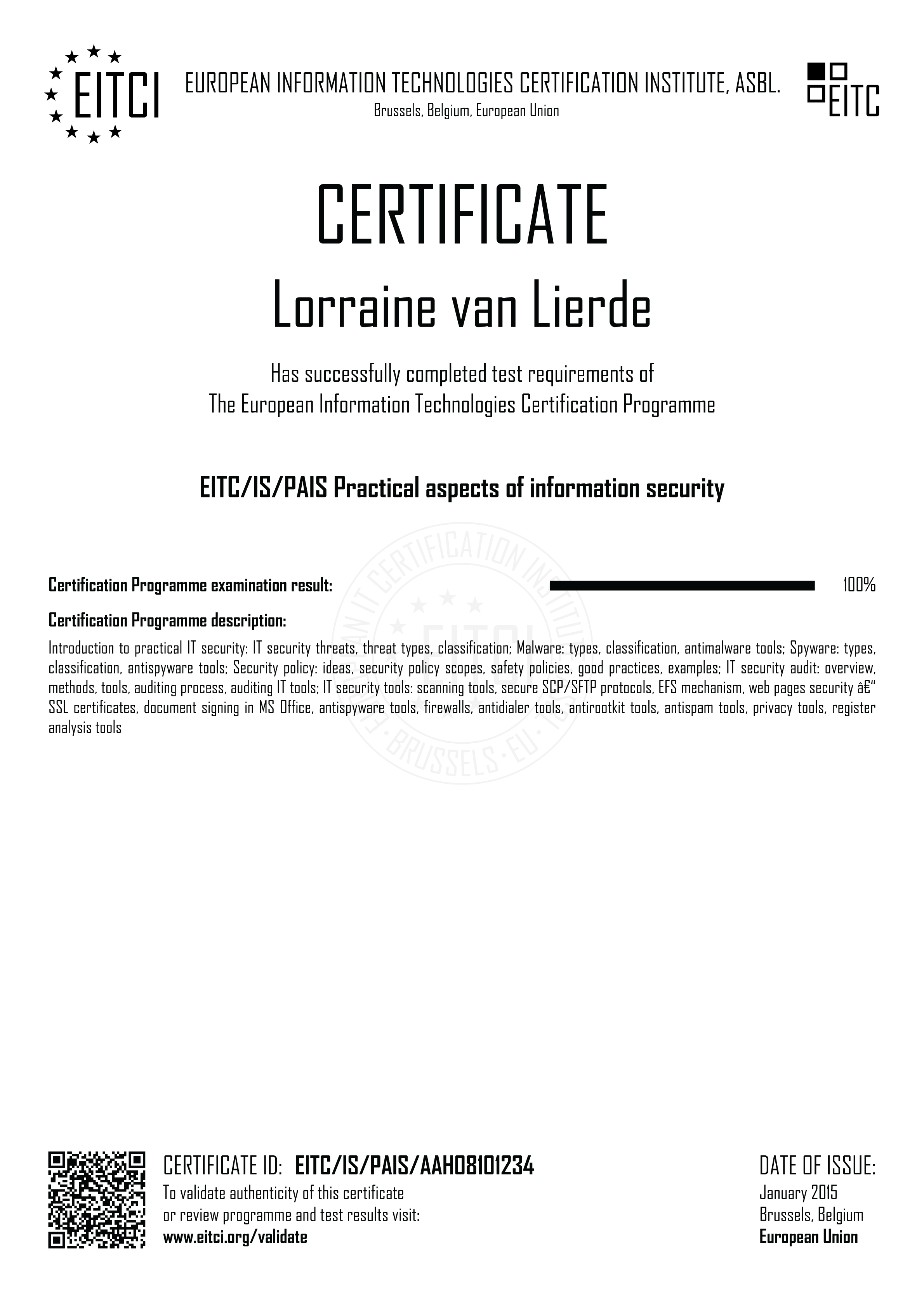 After preparing you take fully on-line EITC exams. After passing all you obtain EITCA Academy Certificate.