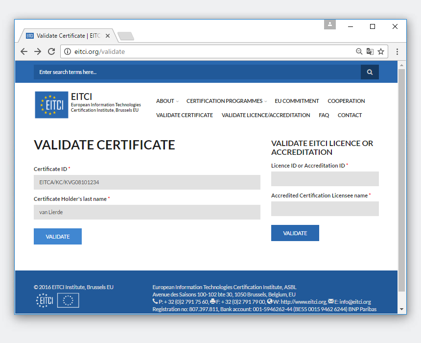 EITCA Academy programme, conducted under the governance of the European Information Technologies Certification Institute in Brussels, allows - after successful completion of on-line examination procedure - to obtain the EITCA Academy Certificates digitally issued in Brussels, along with the detailed supplements and all substituent EITC Certifications. The certification itself is possible both under a complete EITCA Academy programme in the chosen field of specialization (examinations within all EITC Certifications included in the Academy programme resulting in complete EITCA Academy Certificate, the diploma supplement along with all relevant EITC certificates), as well as within more narrowly defined individual EITC Certifications (single exam and single EITC Certificate within each respective EITC programme).