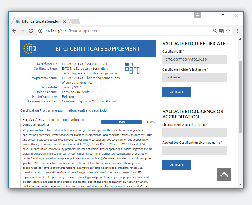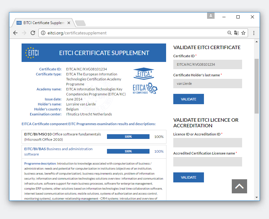 The EU based EITC / EITCA Certificates with detailed supplements constitute a formal attestation of your professional IT skills.
