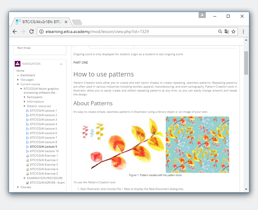 A participant has an individual, unlimited access to the certification platform providing a well planned step-by-step referenced didactic process supervised by the staff responsible for the execution of the programme according to the guidelines of the EITCI Institute, with referenced electronic materials (including open-access): lectures (in a multimedia and text form along with illustrations, animation, photographs or videos referenced and available directly from the platform) with addition of tutorials, laboratories (also including educational trial access to the software, as well as relevant interactive applications) and unlimited remote didactic consultations.