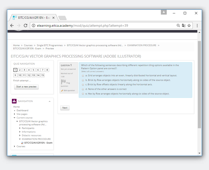 The online referenced didactic materials for each EITC Certification programme fully covered its corresponding curriculum and end with a remote EITC examination (of the closed test characteristic, including 15 random closed multiple-choice test questions on the given EITC programme curriculum).