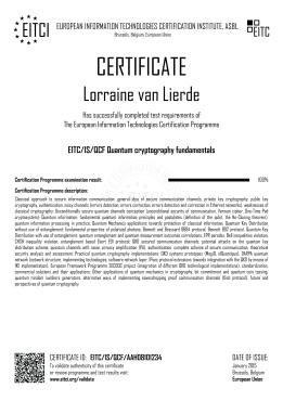 All the procedures are implented fully remotely in Brussels and the Certificates are issued in a digitally secured and verifiable form to the participants.